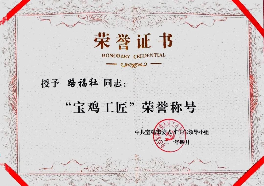路福社获“宝鸡工匠”荣誉称号