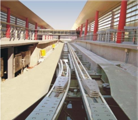 装置组成: 钢铝复合接触轨、中间接头、膨胀接头装置、快速端部接头、电缆连接器、导轨梁电缆夹、接地轨接地装置、铜触头、绝缘支架、绝缘分段接头、防护罩等。