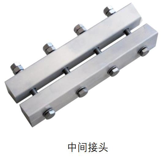 应用范围: 用于城市轨道交通有轨电车-超级电容系统机车供电。装置组成: 钢铝复合接触轨、中间接头、电缆连接板、中心锚结、端部弯头、悬吊线夹、绝缘子、调整底座等。